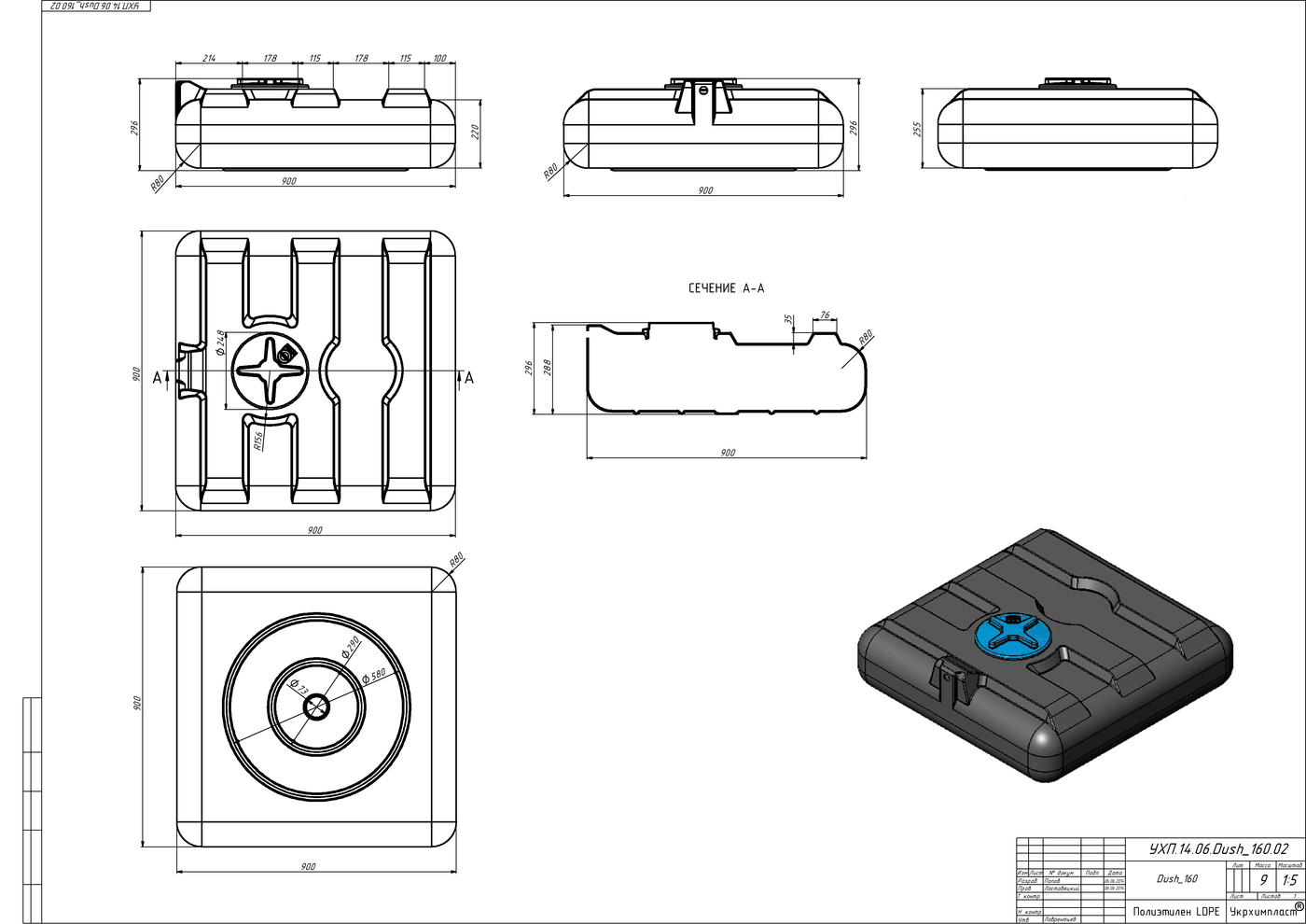 Матеріал ємності для душу на 160 літрів: